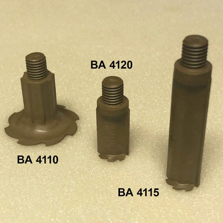 BA 4110 is a one-inch nominal diameter cutter designed for general purpose sealant removal. BA 4115 and BA 4120 are half-inch nominal diameter cutters designed to remove structural sealant from fasteners with high efficiency while reducing wear and tear on air tool equipment.